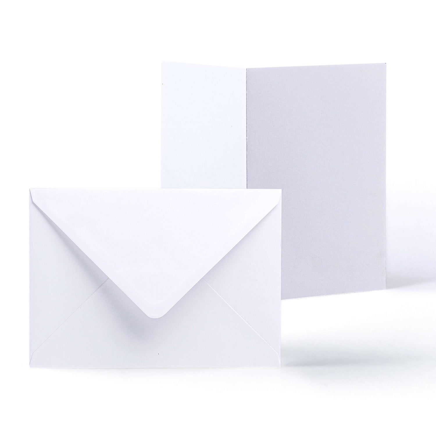 Eleganten komplet vsebuje bele gladke kartice (300 g/m²) in ujemajoče se kuverte (100 g/m²).